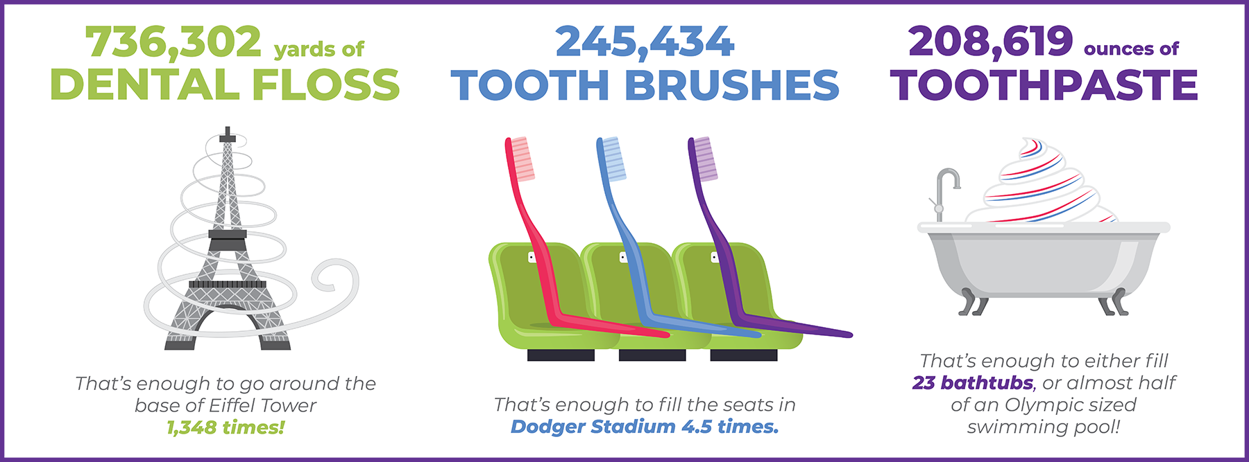 Or put another way, Land of Smiles has given out enough dental floss in 18 months to stretch from either Chicago to Nashville, or Albuquerque to Denver, or Atlanta to Daytona Beach.